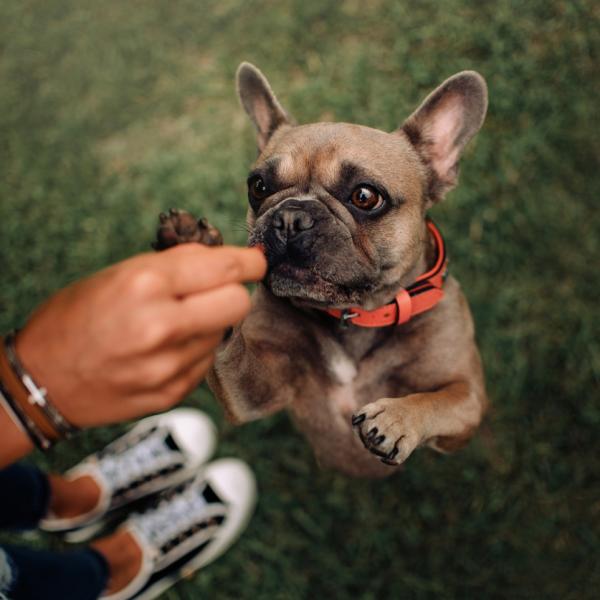 Los snacks deshidratados, como tiras de pollo o ternera, son ideales: sabrosos, naturales y fáciles de romper si es necesario. También puedes elegir productos como tráqueas pequeñas o rodajas de codillo, que ofrecen textura sin ser demasiado duros.