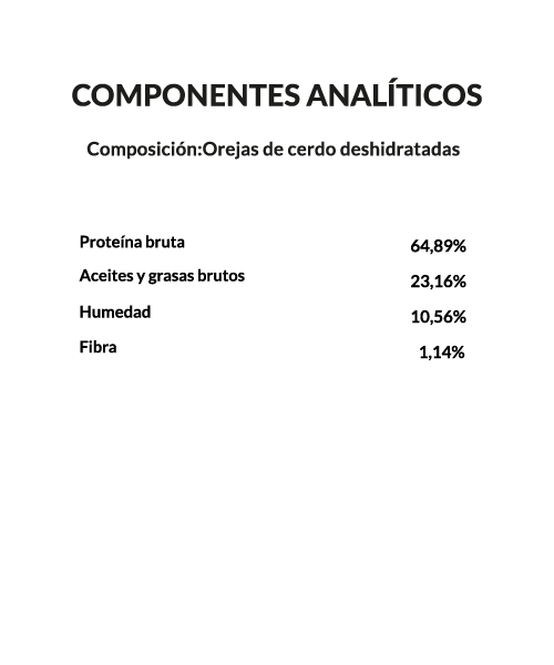 Carne de cerdo (92.68%), glicerina (6.66%) y sal (0.66%)