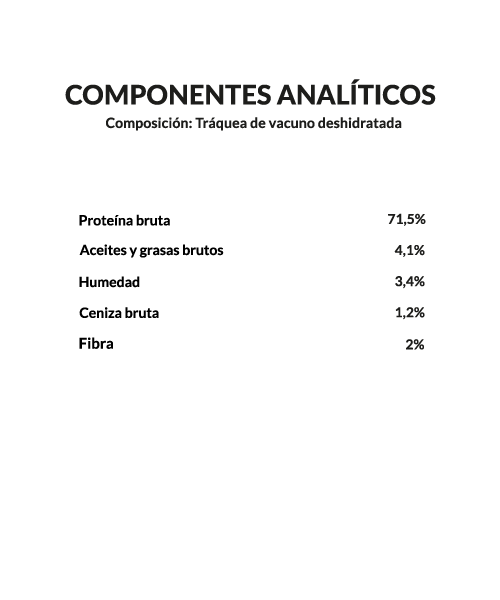 100% traquea de ternera deshidratada.